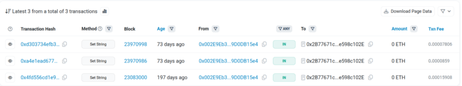 | Wallet Address | 0x002E9Eb388CBd72bad2e1409306af719D0DB15e4 |