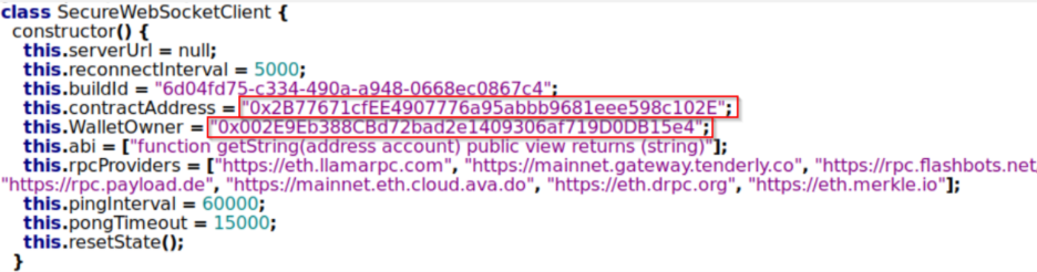 This on-chain design reflects an EtherHiding style tradecraft choice and fits the broader kill chain by separating delivery from control. Instead of embedding a fixed command and control destination that can be quickly blocked, the malware retrieves a blockchain hosted value that acts as a durable pointer to the current operator infrastructure.