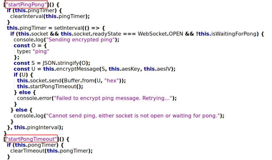 Beyond the on-chain indirection, the bot’s WebSocket transport is engineered to be resilient and stateful, which is where the ping pong logic becomes more than just connectivity noise. After the client receives the AES key and IV from the server and enrolls by sending an encrypted system fingerprint, it moves into a steady heartbeat loop that periodically transmits an encrypted ping and expects an encrypted pong in return. This does two things operationally. It gives the operator a cheap liveness signal for hosts that are still online and reachable, and it provides a builtin health check that forces a reconnect when the session is disrupted or tampered with.