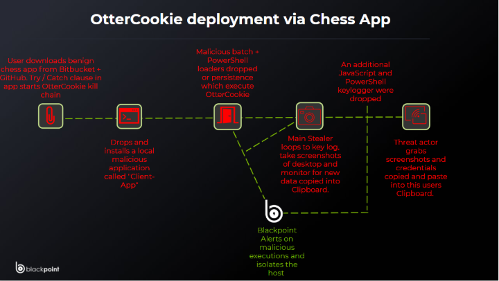 The Blackpoint SOC recently contained an incident involving OtterCookie, a North Korean linked malware family delivered through a trojanized open-source project hosted on Bitbucket. The campaign specifically targets developers and the financial sector, leveraging the trust placed in open-source dependencies to achieve initial access and stage downstream payloads. The loader code, disguised as part of a 3D chess application, intentionally triggers a failure during initialization so its catch block fetches an “error” message from a remote API and executes that returned string in-process, ultimately staging and deploying the OtterCookie malware.