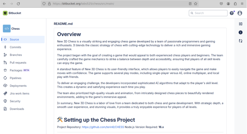 Figure 1: Bitbucket 3D chess repository containing the trojanized initialization routine.