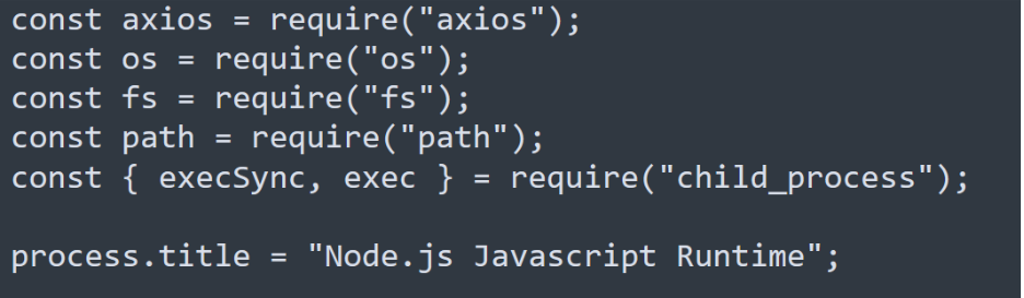 Analysis of .sysupdater.dat shows the payload is heavily obfuscated and packed, consistent with output from obfuscater[.]io. The sample uses identifier renaming, large encoded string blocks, control flow flattening, dead code injection, and self-defense/debug protections that rely on layered eval/Function calls and runtime decoding, all intended to slow static analysis and disrupt static review. At runtime the actor sets the process title to “Node.js Javascript Runtime” to blend the malicious execution among legitimate processes, further complicating casual observation (Figure 7).