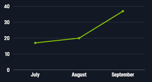 These incidents increased 85% from August to September, which was likely due to a significant increase in targeting of SSL VPN appliances by multiple threat actors, including Akira, Play, and Qilin operations. Along with pre-ransomware activity, Blackpoint’s SOC has been actively tracking the ongoing activity related to the targeting of SonicWall appliances since July 2025.